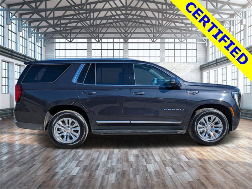 72 point inspection, Certified for extended service plan, Priced below market value, Yukon Denali, 4D Sport Utility, EcoTec3 6.2L V8, 10-Speed Automatic with Overdrive, 4WD, Titanium, Black Leather, 10 Speakers, 15" Diagonal Multi-Color Head-Up Display, 3.23 Rear Axle Ratio, 3rd row seats: split-bench, 4-Way Power Driver Lumbar Seat Adjuster, 4-Way Power Front Passenger Lumbar Seat Adjuster, 4-Wheel Disc Brakes, ABS brakes, Adaptive suspension, Air Conditioning, Alloy wheels, AM/FM radio: SiriusXM with 360L, Apple CarPlay/Android Auto, Audio memory, Auto High-beam Headlights, Auto-dimming door mirrors, Auto-dimming Rear-View mirror, Auto-leveling suspension, Automatic temperature control, AutoSense Hands-Free Power Liftgate, Bodyside moldings, Bose 10-Speaker Surround w/CenterPoint, Brake assist, Bright Front & Rear Door Sill Plates, Bumpers: body-color, Compass, Delay-off headlights, Driver door bin, Driver vanity mirror, Dual Exhaust System, Dual front impact airbags, Dual front side impact airbags, Electronic Stability Control, Emergency communication system: OnStar and GMC connected services capable, Exterior Parking Camera Rear, Four wheel independent suspension, Front anti-roll bar, Front Bucket Seats, Front Center Armrest, Front dual zone A/C, Front fog lights, Front reading lights, Fully automatic headlights, Galvano Bodyside Moldings, Garage door transmitter, Heads-Up Display, Heated door mirrors, Heated Driver & Front Passenger Seats, Heated front seats, Heated rear seats, Heated steering wheel, Illuminated entry, License Plate Front Mounting Package, Low tire pressure warning, Magnetic Ride Control Suspension, Memory seat, Navigation system: GMC Connected Navigation, Occupant sensing airbag, Outside temperature display, Overhead airbag, Overhead console, Panic alarm, Passenger door bin, Passenger vanity mirror, Perforated Heated & Ventilated Dr & Frt Pass Seats, Perforated Leather Seating Surfaces, Power door mirrors, Power driver seat, Power Liftgate, Power passenger seat, Power Release 2nd Row Bucket Seats, Power steering, Power Tilt & Telescopic Steering Column, Power windows, Preferred Equipment Group 5SA, Radio: 16.8" Diagonal Premium GMC Infotainment Sys, Rain sensing wipers, Rear air conditioning, Rear anti-roll bar, Rear reading lights, Rear window defroster, Rear window wiper, Remote keyless entry, Security system, Speed control, Speed-sensing steering, Split folding rear seat, Spoiler, Steering wheel memory, Steering wheel mounted audio controls, Tachometer, Telescoping steering wheel, Tilt steering wheel, Traction control, Trip computer, Turn signal indicator mirrors, Variably intermittent wipers, Ventilated front seats, Voltmeter, Wheels: 20" x 9" 6-Spoke Polished Aluminum, BACKUP CAMERA, BLUETOOTH, HEATED SEATS, 4x4, Yukon Denali, 4D Sport Utility, EcoTec3 6.2L V8, 10-Speed Automatic with Overdrive, 4WD, Titanium, Black Leather, 10 Speakers, 15" Diagonal Multi-Color Head-Up Display, 3.23 Rear Axle Ratio, 3rd row seats: split-bench, 4-Way Power Driver Lumbar Seat Adjuster, 4-Way Power Front Passenger Lumbar Seat Adjuster, 4-Wheel Disc Brakes, ABS brakes, Adaptive suspension, Air Conditioning, Alloy wheels, AM/FM radio: SiriusXM with 360L, Apple CarPlay/Android Auto, Audio memory, Auto High-beam Headlights, Auto-dimming door mirrors, Auto-dimming Rear-View mirror, Auto-leveling suspension, Automatic temperature control, AutoSense Hands-Free Power Liftgate, Bodyside moldings, Bose 10-Speaker Surround w/CenterPoint, Brake assist, Bright Front & Rear Door Sill Plates, Bumpers: body-color, Compass, Delay-off headlights, Driver door bin, Driver vanity mirror, Dual Exhaust System, Dual front impact airbags, Dual front side impact airbags, Electronic Stability Control, Emergency communication system: OnStar and GMC connected services capable, Exterior Parking Camera Rear, Four wheel independent suspension, Front anti-roll bar, Front Bucket Seats, Front Center Armrest, Front dual zone A/C, Front fog lights, Front