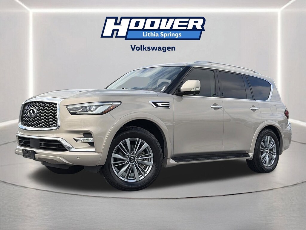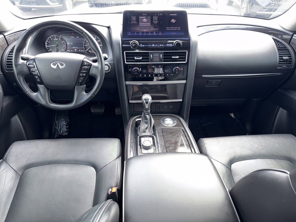PRICED UNDER MARKET, DEALER INSPECTED AND SERVICED, Certified for extended service contract coverage, 13 Speakers, 2.937 Axle Ratio, 3rd row seats: split-bench, 4-Wheel Disc Brakes, ABS brakes, Air Conditioning, All-Season Floor Mats, All-Season Package, Alloy wheels, AM/FM radio: SiriusXM, Anti-whiplash front head restraints, Auto High-beam Headlights, Auto tilt-away steering wheel, Auto-dimming door mirrors, Auto-dimming Rear-View mirror, Auto-leveling suspension, Automatic temperature control, Brake assist, Bumpers: body-color, Cargo Package, Cargo Protector, Compass, Console Net, Delay-off headlights, Driver door bin, Driver vanity mirror, Dual front impact airbags, Dual front side impact airbags, Electronic Stability Control, Emergency communication system: INFINITI InTouch w/1-year trial, First-Aid Kit, Four wheel independent suspension, Front anti-roll bar, Front Bucket Seats, Front Center Armrest, Front dual zone A/C, Front fog lights, Front reading lights, Fully automatic headlights, Garage door transmitter: HomeLink, Heated door mirrors, Heated Front Bucket Seats, Heated front seats, Heated steering wheel, High-Density Non-Slip Rear Cargo Carpet, Illuminated entry, INFINITI Radiant Illuminated Kick Plates (N93), Leather Shift Knob, Leather steering wheel, Leather-Appointed Seats, Literature Kit, Low tire pressure warning, Memory seat, Navigation system: INFINITI InTouch Navigation, Nylon-Cord Cargo Net, Occupant sensing airbag, Outside temperature display, Overhead airbag, Overhead console, Panic alarm, Passenger door bin, Passenger vanity mirror, Power door mirrors, Power driver seat, Power Liftgate, Power moonroof, Power passenger seat, Power steering, Power windows, Premium audio system: Bose, Radio data system, Radio: Bose Premium Audio System w/13 Speakers, Rain sensing wipers, Rear air conditioning, Rear anti-roll bar, Rear reading lights, Rear seat center armrest, Rear window defroster, Rear window wiper, Reclining 3rd row seat, Remote keyless entry, Security system, Speed control, Speed-sensing steering, Split Bench Seat Package, Split folding rear seat, Spoiler, Steering wheel memory, Steering wheel mounted audio controls, Tachometer, Telescoping steering wheel, Tilt steering wheel, Traction control, Trip computer, Turn signal indicator mirrors, Variably intermittent wipers, Voltmeter, Wheels: 20" x 8.0" Aluminum-Alloy.