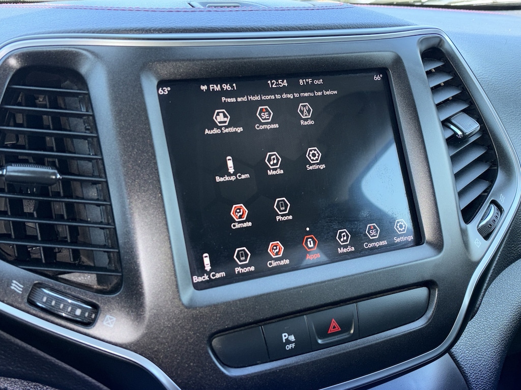 PRICED UNDER MARKET, DEALER INSPECTED AND SERVICED, Certified for extended service contract coverage, 3.517 Axle Ratio, 4-Wheel Disc Brakes, 6 Speakers, 8.4" Touchscreen Display, ABS brakes, Air Conditioning, Alloy wheels, AM/FM radio: SiriusXM, Anti-whiplash front head restraints, Apple CarPlay, Apple CarPlay/Android Auto, Automatic temperature control, AutoStick Automatic Transmission, Auxiliary Transmission Oil Cooler, Brake assist, Cloth/Premium Vinyl Bucket Seats, Compass, Delay-off headlights, Driver door bin, Driver vanity mirror, Dual Bright Exhaust Tips, Dual front impact airbags, Dual front side impact airbags, Electronic Stability Control, Engine Oil Cooler, Exterior Mirrors Courtesy Lamps, Exterior Mirrors w/Supplemental Signals, Four wheel independent suspension, Front anti-roll bar, Front Bucket Seats, Front Center Armrest, Front dual zone A/C, Front fog lights, Front License Plate Bracket (DISC), Front reading lights, Fully automatic headlights, Google Android Auto, GPS Antenna Input, Heated door mirrors, Hill Descent Control, Illuminated entry, Integrated Voice Command w/Bluetooth, Knee airbag, Leather Shift Knob, Low tire pressure warning, Manufacturer's Statement of Origin (DISC), Occupant sensing airbag, Off Road Suspension, Outside temperature display, Overhead airbag, Overhead console, Panic alarm, ParkView Rear Back-Up Camera, Passenger door bin, Passenger vanity mirror, Power door mirrors, Power driver seat, Power steering, Power windows, Quick Order Package 27E Trailhawk, Radio data system, Radio: Uconnect 4 w/8.4" Display, Rear anti-roll bar, Rear reading lights, Rear seat center armrest, Rear side impact airbag, Rear window defroster, Rear window wiper, Remote keyless entry, Roof rack: rails only, SiriusXM Satellite Radio, Speed control, Speed-sensing steering, Split folding rear seat, Spoiler, Steering wheel mounted audio controls, Stop-Start Multiple VSM System, Tachometer, Telescoping steering wheel, Tilt steering wheel, Traction control, Trip computer, Turn signal indicator mirrors, USB Host Flip, Variably intermittent wipers, Voltmeter, Wheels: 17" x 7.5" Painted/Polished Aluminum.