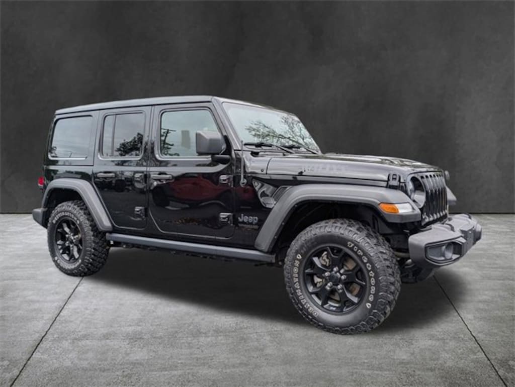 PRICED UNDER MARKET, DEALER INSPECTED AND SERVICED, Certified for extended service contract coverage, 115V Auxiliary Power Outlet, 3.45 Rear Axle Ratio, 4-Wheel Disc Brakes, 4-Wheel Drive Swing Gate Decal, 7.0 Touchscreen Display, 8 Speakers, 8.4 Radio & Premium Audio Group, 8.4 Radio & Premium Audio Group (DISC), ABS brakes, Air Conditioning, Air Conditioning w/Auto Temperature Control, Air Filtering, Alpine Premium Audio System, AM/FM radio, Anti-Spin Differential Rear Axle, Apple CarPlay, Auto-Dimming Rear-View Mirror, Automatic Headlamps, Aux Battery, Black Grille, Black Trail Rated Badge, Brake assist, Cloth Low-Back Bucket Seats, Cluster 7.0 TFT Color Display, Cold Weather Group, Compass, Console Bin Task Light, Convenience Group, Deep Tint Sunscreen Windows, Delay-off headlights, Driver door bin, Driver vanity mirror, Dual front impact airbags, Dual front side impact airbags, Electronic Stability Control, Emergency/Assistance Call, For More Info, Call 800-643-2112, Front 1-Touch Down Power Windows, Front anti-roll bar, Front Bucket Seats, Front Center Armrest w/Storage, Front fog lights, Front LED Fog Lamps, Front reading lights, Google Android Auto, GPS Antenna Input, Heated Front Seats, Heated Steering Wheel, Integrated Center Stack Radio, Integrated roll-over protection, Leather Wrapped Steering Wheel, LED Headlamp & Fog Lamp Group, LED Premium Reflector Headlamps, Low tire pressure warning, Manufacturer's Statement of Origin, Matte Black Jeep Badge, Media Hub-2 USBS (Both Charge Only), Mold In Color Bumper w/Gloss Black, MOPAR All-Weather Floor Mats, MOPAR All-Weather Floor Mats (DISC), Non-Lock Fuel Cap w/o Discriminator, Normal Duty Suspension, Occupant sensing airbag, Outside temperature display, ParkView Rear Back-Up Camera, Passenger door bin, Passenger vanity mirror, Power Heated Mirrors, Power steering, Power Top Quarter Window Storage Bag, Quick Order Package 22W Willys, Radio data system, Radio: Uconnect 4C Nav w/8.4 Display (DISC), Rear anti-roll bar, Rear reading lights, Rear Window Defroster, Rear Window Wiper/Washer, Remote Keyless Entry, Remote USB Port - Charge Only, Removable Rear Quarter Windows, Security Alarm, SiriusXM Radio Service, SiriusXM Satellite Radio, Sky 1-Touch Power Top, Speed control, Speed Sensitive Power Locks, Split folding rear seat, Steering wheel mounted audio controls, Stop-Start Dual Battery System, Sun and Sound Package, Sun Visors w/Illuminated Vanity Mirrors, Tachometer, Technology Group, Telescoping steering wheel, Tilt steering wheel, Traction control, Trip computer, Universal Garage Door Opener, USB Host Flip, Variably intermittent wipers, Wheels: 17 x 7.5 Moab Black Aluminum, Willys, Willys Hood Decal, Wrangler Decal, 115V Auxiliary Power Outlet, 3.45 Rear Axle Ratio, 4-Wheel Disc Brakes, 4-Wheel Drive Swing Gate Decal, 7.0 Touchscreen Display, 8 Speakers, 8.4 Radio & Premium Audio Group, 8.4 Radio & Premium Audio Group (DISC), ABS brakes, Air Conditioning, Air Conditioning w/Auto Temperature Control, Air Filtering, Alpine Premium Audio System, AM/FM radio, Anti-Spin Differential Rear Axle, Apple CarPlay, Auto-Dimming Rear-View Mirror, Automatic Headlamps, Aux Battery, Black Grille, Black Trail Rated Badge, Brake assist, Cloth Low-Back Bucket Seats, Cluster 7.0 TFT Color Display, Cold Weather Group, Compass, Console Bin Task Light, Convenience Group, Deep Tint Sunscreen Windows, Delay-off headlights, Driver door bin, Driver vanity mirror, Dual front impact airbags, Dual front side impact airbags, Electronic Stability Control, Emergency/Assistance Call, For More Info, Call 800-643-2112, Front 1-Touch Down Power Windows, Front anti-roll bar, Front Bucket Seats, Front Center Armrest w/Storage, Front fog lights, Front LED Fog Lamps, Front reading lights, Google Android Auto, GPS Antenna Input, Heated Front Seat