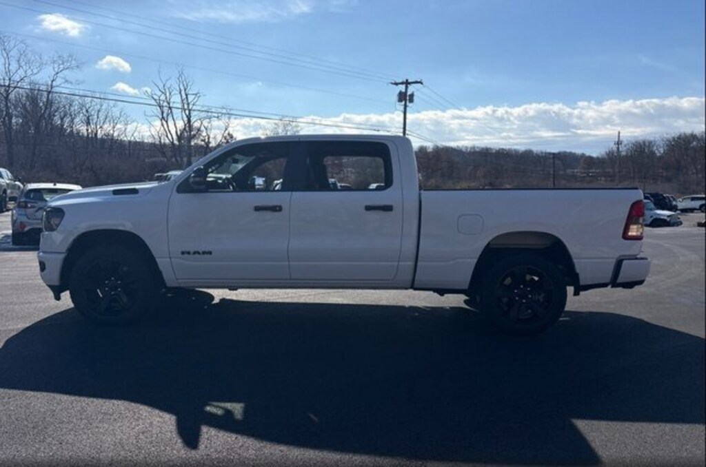 PRICED UNDER MARKET, DEALER INSPECTED AND SERVICED, Certified for extended service contract coverage, 115V Auxiliary Power Outlet, 2nd Row In Floor Storage Bins, 3 Rear Seat Head Restraints, 3.21 Rear Axle Ratio, 4 Way Front Headrests, 4-Wheel Disc Brakes, 400W Inverter, 48V Belt Starter Generator, 4G LTE Wi-Fi Hot Spot, 6 Speakers, 9 Amplified Speakers w/Subwoofer, ABS brakes, Accent Color Door Handles, Accent Color Premium Power Mirrors, Active Noise Control System, Air Conditioning, Air Conditioning ATC w/Dual Zone Control, All R1 High Radios, All Radio Equipped Vehicles, Alloy wheels, AM/FM radio, Anti-Spin Differential Rear Axle, Apple CarPlay, Auto-Dimming Exterior Driver Mirror, Auto-Dimming Rear-View Mirror, Big Horn Badge, Big Horn Level B Equipment Group, Black Exterior Truck Badging, Black Headlamp Bezels, Black Interior Accents, Black Painted Exterior Mirrors Caps, Black Premium Power Mirrors, Body Color Front Bumper, Body Color Rear Bumper w/Step Pads, Brake assist, Bucket Seats, Bumpers: chrome, Class IV Receiver Hitch, Cloth Bench Seat, Cluster 7.0 TFT Color Display, Compass, Connected Travel & Traffic Services, Connectivity - US/Canada, Convex Wide-Angle Exterior Mirror Insert, Delay-off headlights, Deluxe Cloth Bucket Seats, Driver door bin, Dual Exhaust w/Black Tips, Dual front impact airbags, Dual front side impact airbags, Dual Rear Exhaust w/Bright Tips, Electronic Stability Control, Emergency communication system: RAM Connect, Exterior Mirrors Courtesy Lamps, Exterior Mirrors w/Heating Element, Exterior Mirrors w/Supplemental Signals, For Details, Visit DriveUconnect.com, For More Info, Call 800-643-2112, Front anti-roll bar, Front Center Armrest w/Storage, Front Fog Lamps, Front License Plate Bracket, Front reading lights, Front Seat Back Map Pockets, Front wheel independent suspension, Full Length Floor Console, Fully automatic headlights, Global Telematics Box Module (TBM), Glove Box Lamp, Google Android Auto, GPS Navigation, Grille Surround 1 Black Texture 2 Black, HD Radio, Heated door mirrors, Heated Front Seats, Heated Steering Wheel, Heavy-Duty Engine Cooling, HEMI Badge, Illuminated entry, Integrated Voice Command w/Bluetooth, Leather steering wheel, LED Footwell Lighting, Low tire pressure warning, Manual Adjust 4-Way Front Passenger Seat, Media Hub w/2 Charge Only USBs, Night Edition, Occupant sensing airbag, Outside temperature display, Overhead airbag, Overhead console, Panic alarm, ParkSense Front/Rear Park Assist w/Stop, ParkView Rear Back-Up Camera, Passenger door bin, Passenger vanity mirror, Power 2-Way Driver Lumbar Adjust, Power 8-Way Driver Seat, Power Adjustable Pedals, Power door mirrors, Power steering, Power windows, Power-Folding Mirrors, Quick Order Package 27Z Big Horn, Radio data system, Radio: Uconnect 3 w/5 Display, Radio: Uconnect 5 Nav w/12.0 Display, RAM Grille Badge - Black, RAM Grille Badge - Chrome, Rear 60/40 Folding Seat, Rear anti-roll bar, Rear Center Armrest, Rear Dome w/On/Off Switch Lamp, Rear Power Sliding Window, Rear seat center armrest, Rear step bumper, Rear Window Defroster, Remote keyless entry, Remote Start System, Security Alarm, SiriusXM Radio Service, SiriusXM Satellite Radio, SiriusXM w/360L, Speed control, Split folding rear seat, Steering wheel mounted audio controls, Sun Visors w/Illuminated Vanity Mirrors, Tachometer, Telescoping steering wheel, Tilt steering wheel, Traction control, Trip computer, Universal Garage Door Opener, USB Host Flip, Variably intermittent wipers, Voltmeter, Wheels: 20 x 9.0 Premium Paint/Polished, 115V Auxiliary Power Outlet, 2nd Row In Floor Storage Bins, 3 Rear Seat Head Restraints, 3.21 Rear Axle Ratio, 4 Way Front Headrests, 4-Wheel Disc Brakes, 400W Inverter, 48V Belt Starter Generator, 4G LTE Wi-Fi Hot Spot