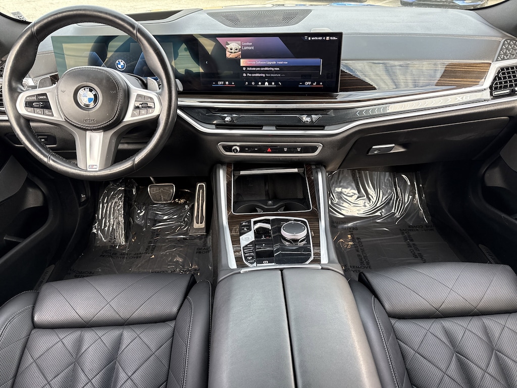 PRICED UNDER MARKET, DEALER INSPECTED AND SERVICED, Certified for extended service contract coverage, Black w/Extended Merino Leather Upholstery, 10 Speakers, 4-Wheel Disc Brakes, ABS brakes, Adaptive suspension, Air Conditioning, Alloy wheels, AM/FM radio: SiriusXM with 360L, AM/FM Stereo, Apple CarPlay Compatibility, Auto High-beam Headlights, Auto tilt-away steering wheel, Auto-dimming door mirrors, Auto-dimming Rear-View mirror, Automatic temperature control, BMW Assist eCall, BMW TeleServices, Brake assist, Bumpers: body-color, Compass, Connected Package Pro, ConnectedDrive Services, Delay-off headlights, Driver door bin, Driver vanity mirror, Dual front impact airbags, Dual front side impact airbags, Electronic Stability Control, Emergency communication system: BMW Assist eCall, Exterior Parking Camera Rear, Four wheel independent suspension, Front anti-roll bar, Front Bucket Seats, Front Center Armrest, Front dual zone A/C, Front reading lights, Fully automatic headlights, Garage door transmitter, Genuine wood console insert, Genuine wood door panel insert, Head restraints memory, Heated door mirrors, Heated Front Seats, Heated front seats, Hi-Fi Sound System, Illuminated entry, Leather steering wheel, Low tire pressure warning, Lumbar Support, Memory seat, Navigation, Navigation System, Occupant sensing airbag, Outside temperature display, Overhead airbag, Overhead console, Panic alarm, Passenger door bin, Passenger vanity mirror, Personal eSIM 5G, Power adjustable front head restraints, Power door mirrors, Power driver seat, Power Front Seats, Power Liftgate, Power moonroof, Power passenger seat, Power steering, Power windows, Radio data system, Rain sensing wipers, Rear anti-roll bar, Rear reading lights, Rear seat center armrest, Rear window defroster, Remote keyless entry, Security system, Sensafin Upholstery, SiriusXM Satellite Radio w/1-Year Subscription, Speed control, Speed-sensing steering, Speed-Sensitive Wipers, Split folding rear seat, Spoiler, Sport Seats, Sport steering wheel, Steering wheel memory, Steering wheel mounted audio controls, Tachometer, Telescoping steering wheel, Tilt steering wheel, Traction control, Trip computer, Turn signal indicator mirrors, Variably intermittent wipers, Wheels: 20" x 9" M Star-Spoke Bicolor (Style 740M), Wireless Device Charging, Black w/Extended Merino Leather Upholstery.