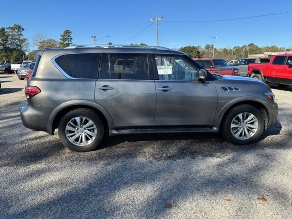 72 point inspection, Certified for extended service plan, Priced below market value, 4D Sport Utility, 5.6L V8, 7-Speed Automatic, 4WD, Smoky Quartz, Graphite Leather, 13 Speakers, 3rd row seats: split-bench, 4-Wheel Disc Brakes, ABS brakes, Activation Disclaimer, Air Conditioning, AM/FM radio: SiriusXM, Anti-whiplash front head restraints, Auto High-beam Headlights, Auto tilt-away steering wheel, Auto-dimming door mirrors, Auto-dimming Rear-View mirror, Auto-leveling suspension, Automatic temperature control, Bose Premium Sound System, Brake assist, Bumpers: body-color, CD player, Delay-off headlights, Driver door bin, Driver vanity mirror, Dual front impact airbags, Dual front side impact airbags, Electronic Stability Control, Emergency communication system: INFINITI Connection, Four wheel independent suspension, Front Bucket Seats, Front Center Armrest, Front fog lights, Front reading lights, Fully automatic headlights, Garage door transmitter: HomeLink, Genuine wood console insert, Genuine wood dashboard insert, Genuine wood door panel insert, Heated door mirrors, Heated Front Bucket Seats, Heated front seats, Heated steering wheel, Illuminated entry, Lane Departure Warning System, Leather Shift Knob, Leather steering wheel, Leather-Appointed Seats w/Mocha Burl Trim, Literature Kit, Memory seat, Navigation System, Outside temperature display, Overhead console, Panic alarm, Passenger door bin, Passenger vanity mirror, Power door mirrors, Power driver seat, Power Liftgate, Power moonroof, Power passenger seat, Power steering, Power windows, Radio data system, Rear air conditioning, Rear audio controls, Rear reading lights, Rear seat center armrest, Rear window defroster, Reclining 3rd row seat, Remote keyless entry, Roof rack: rails only, Security system, Speed control, Speed-sensing steering, Split folding rear seat, Spoiler, Steering wheel memory, Tachometer, Telescoping steering wheel, Tilt steering wheel, Traction control, Turn signal indicator mirrors, 2.94 Axle Ratio, Alloy wheels, Front anti-roll bar, Front dual zone A/C, Low tire pressure warning, Occupant sensing airbag, Overhead airbag, Rain sensing wipers, Rear anti-roll bar, Rear window wiper, Steering wheel mounted audio controls, Trip computer, Variably intermittent wipers, Voltmeter, Wheels: 20" x 8.0" Split 6-Spoke Aluminum-Alloy, NAVIGATION, BACKUP CAMERA, BLUETOOTH, 4x4, 4D Sport Utility, 5.6L V8, 7-Speed Automatic, 4WD, Smoky Quartz, Graphite Leather, 13 Speakers, 3rd row seats: split-bench, 4-Wheel Disc Brakes, ABS brakes, Activation Disclaimer, Air Conditioning, AM/FM radio: SiriusXM, Anti-whiplash front head restraints, Auto High-beam Headlights, Auto tilt-away steering wheel, Auto-dimming door mirrors, Auto-dimming Rear-View mirror, Auto-leveling suspension, Automatic temperature control, Bose Premium Sound System, Brake assist, Bumpers: body-color, CD player, Delay-off headlights, Driver door bin, Driver vanity mirror, Dual front impact airbags, Dual front side impact airbags, Electronic Stability Control, Emergency communication system: INFINITI Connection, Four wheel independent suspension, Front Bucket Seats, Front Center Armrest, Front fog lights, Front reading lights, Fully automatic headlights, Garage door transmitter: HomeLink, Genuine wood console insert, Genuine wood dashboard insert, Genuine wood door panel insert, Heated door mirrors, Heated Front Bucket Seats, Heated front seats, Heated steering wheel, Illuminated entry, Lane Departure Warning System, Leather Shift Knob, Leather steering wheel, Leather-Appointed Seats w/Mocha Burl Trim, Literature Kit, Memory seat, Navigation System, Outside temperature display, Overhead console, Panic alarm, Passenger door bin, Passenger vanity mirror, Power door mirrors, Power driver seat, Power Liftgate, Power moonroof, Power passenger seat, Power steering, Power windows, Radio data system, Rear air conditioning, Rear audio controls, Rear reading lights, Rear seat center armrest, Rear window defroster,