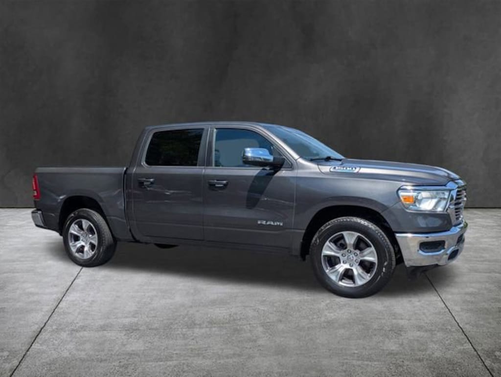 PRICED UNDER MARKET, DEALER INSPECTED AND SERVICED, Certified for extended service contract coverage, 10 Speakers, 3 Rear Seat Head Restraints, 3.21 Rear Axle Ratio, 4 Way Front Headrests, 4-Wheel Disc Brakes, 48V Belt Starter Generator, 4G LTE Wi-Fi Hot Spot, ABS brakes, Air Conditioning, Alloy wheels, AM/FM radio: SiriusXM with 360L, Apple CarPlay, Apple CarPlay/Android Auto, Audio memory, Auto-dimming door mirrors, Auto-Dimming Exterior Driver Mirror, Auto-dimming Rear-View mirror, Automatic temperature control, Brake assist, Bumpers: chrome, Chrome Exterior Mirrors, Compass, Connected Travel & Traffic Services, Connectivity - US/Canada, Convex Wide-Angle Exterior Mirror Insert, Delay-off headlights, Driver door bin, Driver Seat Memory, Driver vanity mirror, Dual front impact airbags, Dual front side impact airbags, Electronic Stability Control, Exterior Mirrors Courtesy Lamps, Exterior Mirrors w/Heating Element, Exterior Mirrors w/Memory, Exterior Mirrors w/Supplemental Signals, Exterior Parking Camera Rear, For Details, Visit DriveUconnect.com, For More Info, Call 800-643-2112, Front anti-roll bar, Front Center Armrest w/Storage, Front dual zone A/C, Front fog lights, Front License Plate Bracket, Front reading lights, Front Seat Back Map Pockets, Front wheel independent suspension, Fully automatic headlights, Garage door transmitter, Global Telematics Box Module (TBM), Google Android Auto, GPS Navigation, HD Radio, Heated door mirrors, Heated Front Seats, Heated front seats, Heated Steering Wheel, Heated steering wheel, Illuminated entry, Integrated Voice Command w/Bluetooth, Leather steering wheel, Leather Trim 40/20/40 Bench Seat, Low tire pressure warning, Manufacturer's Statement of Origin, Memory seat, Navigation System, Occupant sensing airbag, Outside temperature display, Overhead airbag, Overhead console, Panic alarm, Passenger door bin, Passenger vanity mirror, Power 2-Way Driver Lumbar Adjust, Power 2-Way Passenger Lumbar Adjust, Power 8-Way Driver & Passenger Seats, Power door mirrors, Power driver seat, Power passenger seat, Power steering, Power windows, Power-Folding Mirrors, Quick Order Package 27H Laramie, Radio data system, Radio: Uconnect 5 Nav w/8.4 Display, RAM Grille Badge - Chrome, Rear 60/40 Folding Seat, Rear anti-roll bar, Rear seat center armrest, Rear step bumper, Remote keyless entry, Security system, SiriusXM Radio Service, SiriusXM w/360L, Speed control, Split folding rear seat, Steering wheel mounted audio controls, Tachometer, Telescoping steering wheel, Tilt steering wheel, Traction control, Trip computer, Turn signal indicator mirrors, Variably intermittent wipers, Ventilated Front Seats, Ventilated front seats, Voltmeter, Wheels: 18 x 8 Aluminum Base Painted, Wheels: 20 x 9 Premium Paint/Polished.